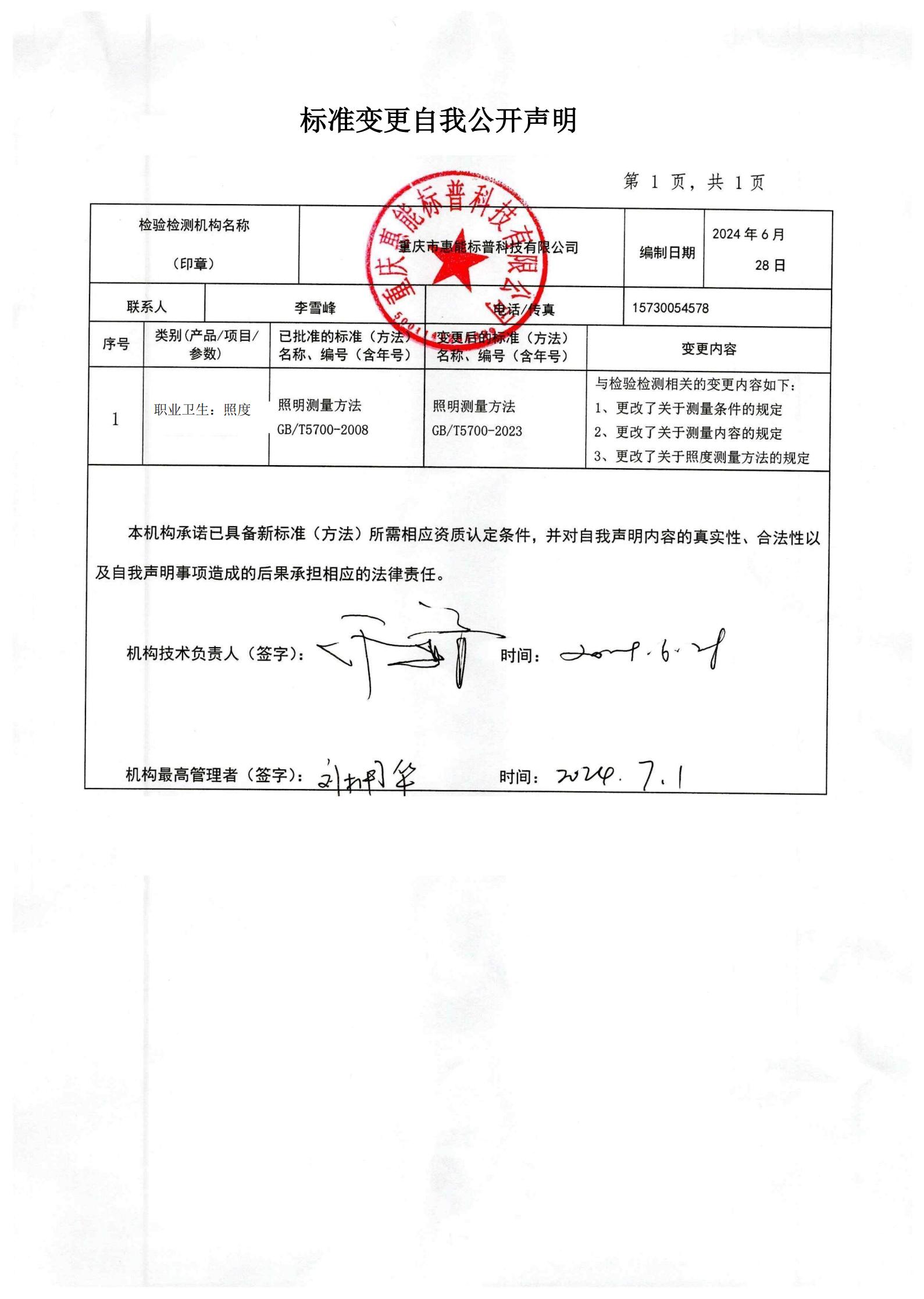方法变更的自我声明