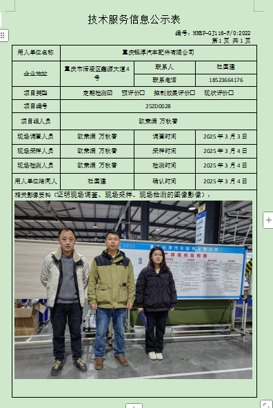 重庆钰淳汽车配件有限公司定期检测项目公示
