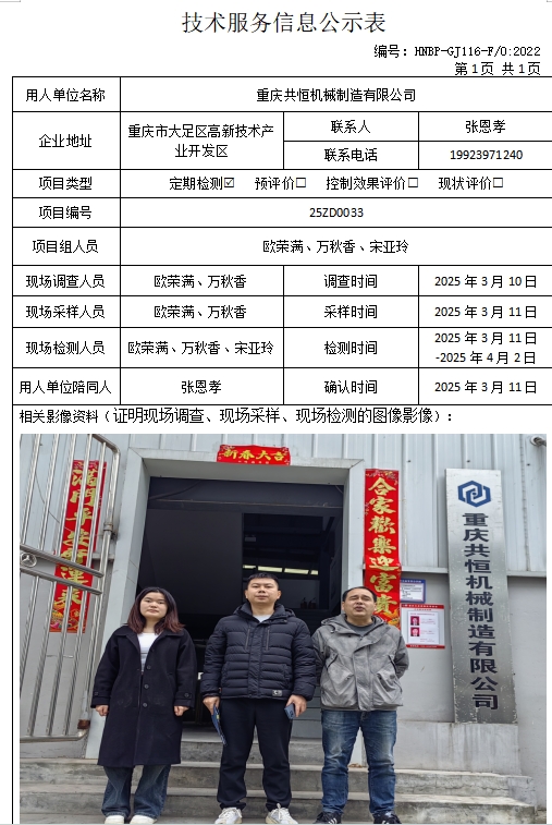 重庆共恒机械制造有限公司定期检测项目公示