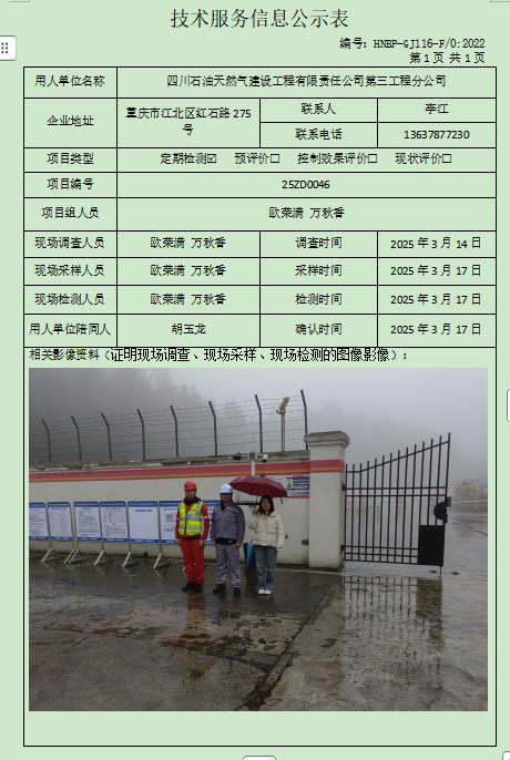 四川石油天然气建设工程有限责任公司第三工程分公司定期检测项目公示