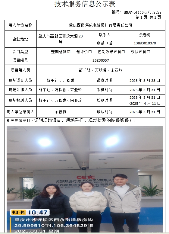 重庆西南集成电路设计有限责任公司定期检测项目公示
