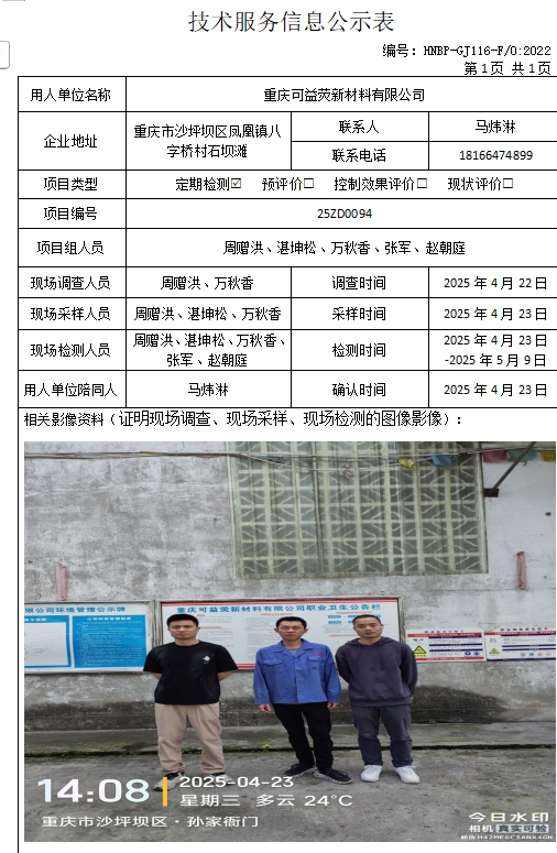 重庆可益荧新材料有限公司定期检测项目公示