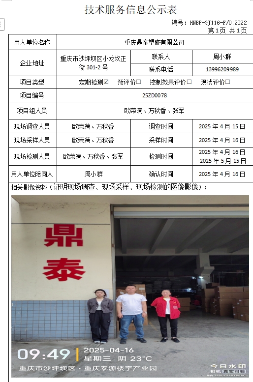 重庆鼎泰塑胶有限公司定期检测项目公示
