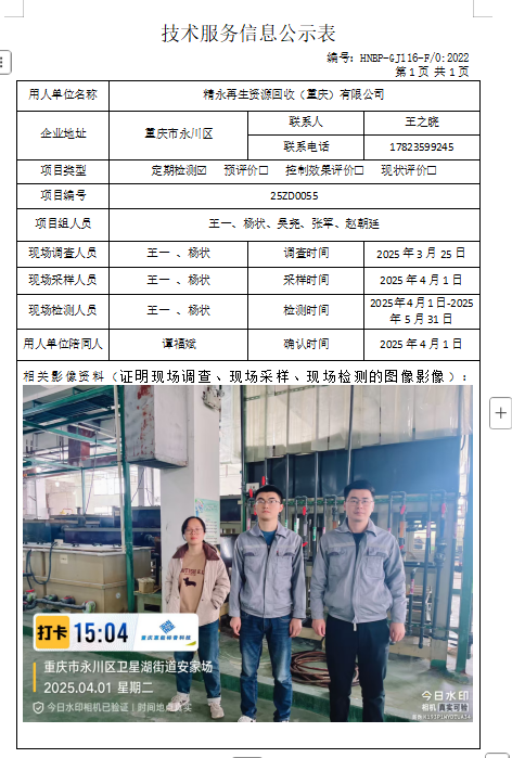 重庆和畅包装有限公司定期检测项目公示...