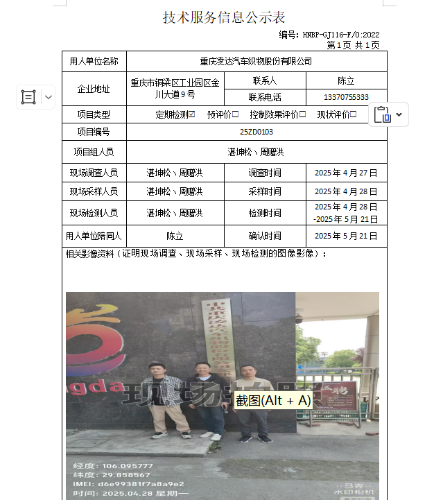 职业卫生检测项目公示