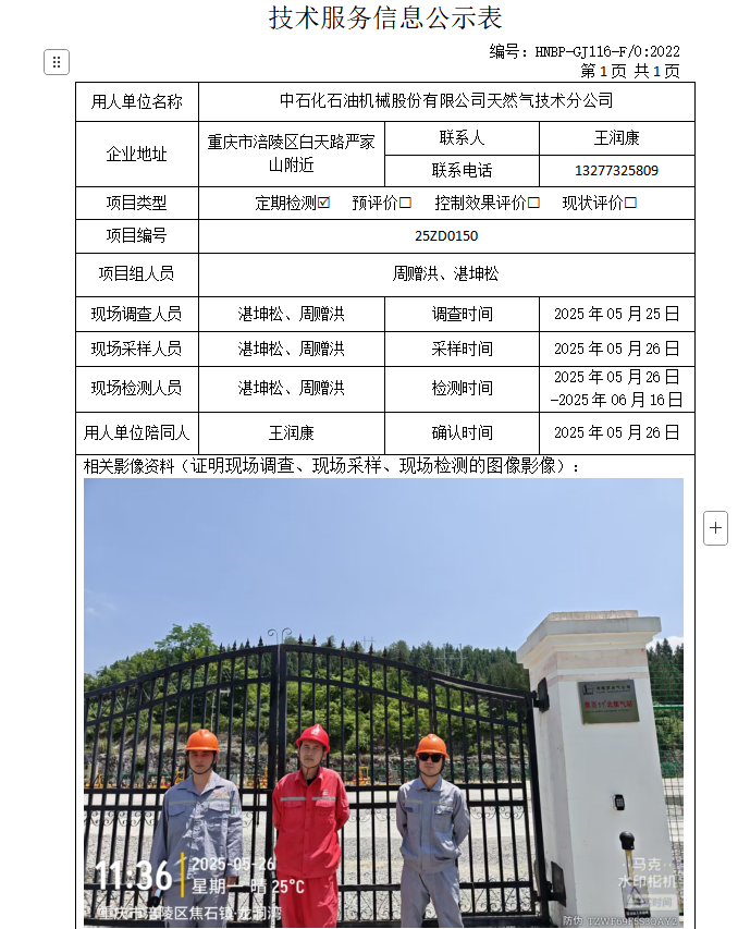 中石化石油机械股份有限公司天然气技术服务分公司定期检测项目公示