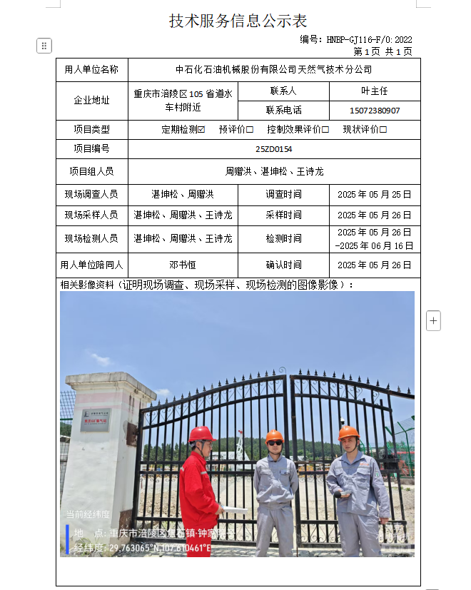 中石化石油机械股份有限公司天然气技术服务分公司定期检测项目公示