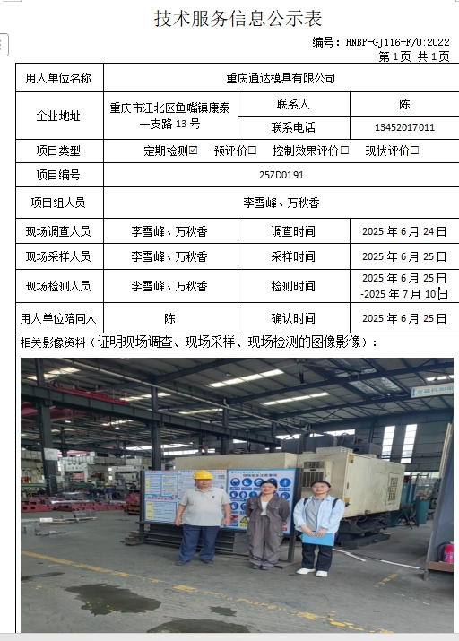 重庆鑫祺石油机械设备有限公司定期检测项目...