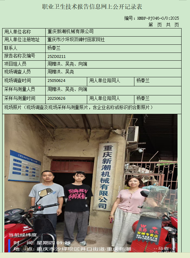 重庆蓥山机电制造有限公司定期检测项目公示...
