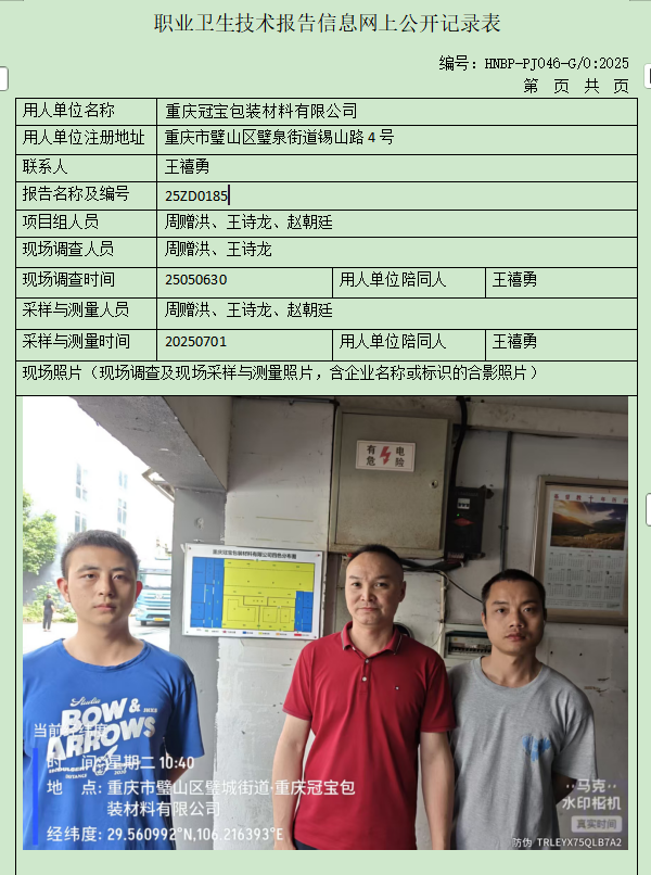 重庆安比芯汽车进气系统有限公司定期检测项...
