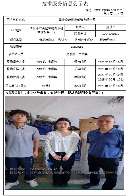 重庆金浪机电制造有限公司定期检测公示项目