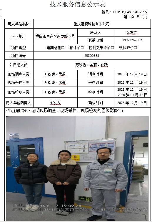 重庆市众泰无纺制品有限公司定期检测项目公...