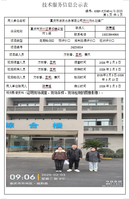 重庆市渝东水务有限公司开州污水处理厂定期检测项目公示