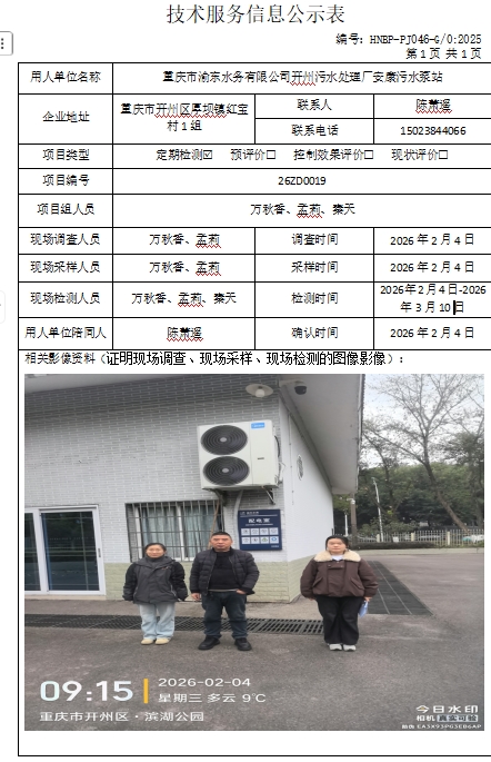 重庆市渝东水务有限公司开州污水处理厂安康污水泵站定期检测项目公示