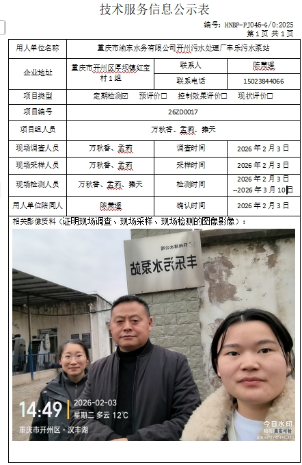 重庆市渝东水务有限公司开州污水处理厂丰乐污水泵站定期检测项目公示
