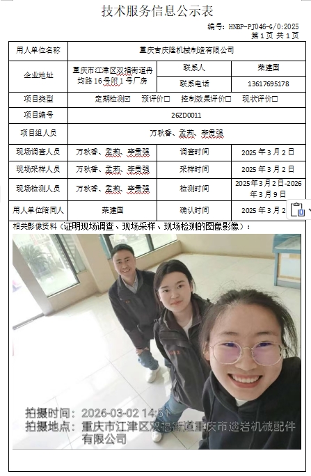 重庆吉庆隆机械制造有限公司定期检测项目公示
